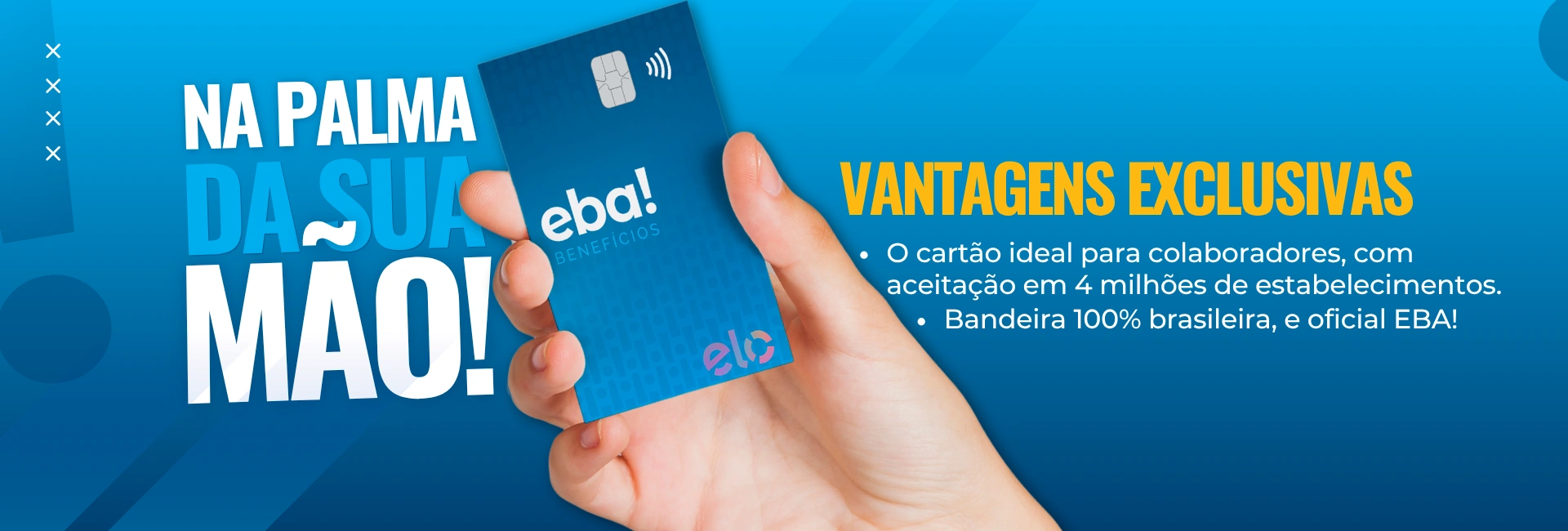 Com o Cartão Eba! Benefícios, você tem acesso a uma solução completa e flexível, capaz de atender todas as necessidades da sua empresa em um único cartão.